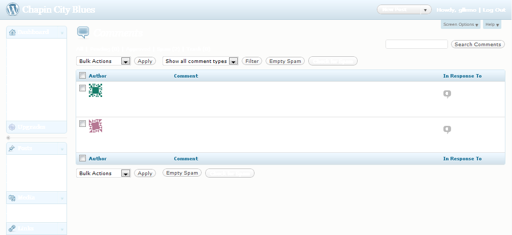 Every so often I like to the spam comments the blog brings in; today, however, WordPress – or Google Chrome’s screenshot extension – decided it wasn’t going to comply. Awesome, right? So instead of reading my feature spam – “nice day City Chapin Blues, i review your blog, that a nice blog and perfect. Good for everyone. a lot of Work and Joey content. i going to plan to read and comment your website.”