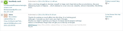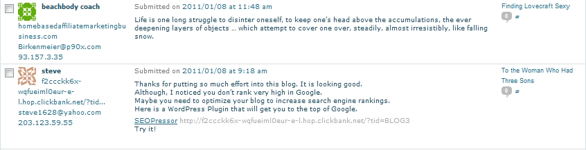 In this week’s spam, I found a Rose Maucalay quote made by someone known as Beachbody Coach and a rather insulting spam comment attempting to lure me in to their the SEO program to raise my Google ranking. Because people really should know about me.