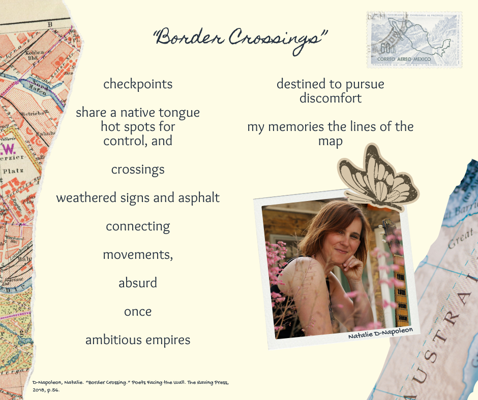 D-Napoleon, Natalie. “Border Crossing.” Poets Facing the Wall.* The Raving Press, 2018, p.56.